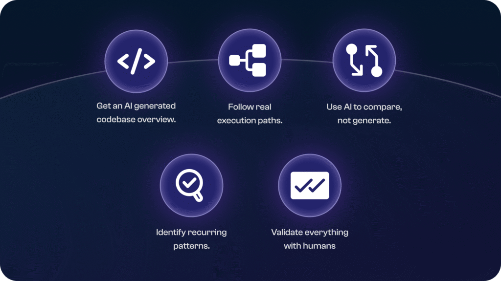 AI gave me speed, but the team gave me correctness. I always checked my findings with colleagues, and that sparked better discussions. Instead of asking “What does this file do?” I could ask: